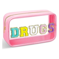 कस्टम ट्रैवल ब्यूटी पाउच सादा पत्र पैच पारदर्शी मेकअप बैग के साथ पारदर्शी मेकअप बैग