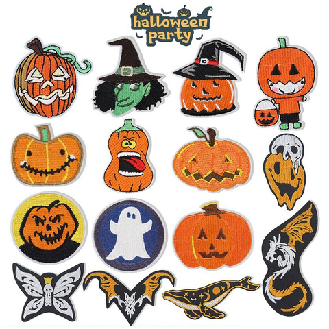 Halloween Terror Pumpkin Bat Witch dolcetto o scherzetto toppe ricamate Iron On Custom Your Logo Badge per giacca camicia cappello scarpe