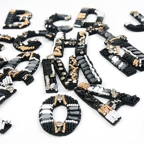 Toppe di perle con perline di strass di diamanti con lettera nera di moda fatte a mano personalizzate Appliques di alfabeto personalizzate accessori per l'abbigliamento